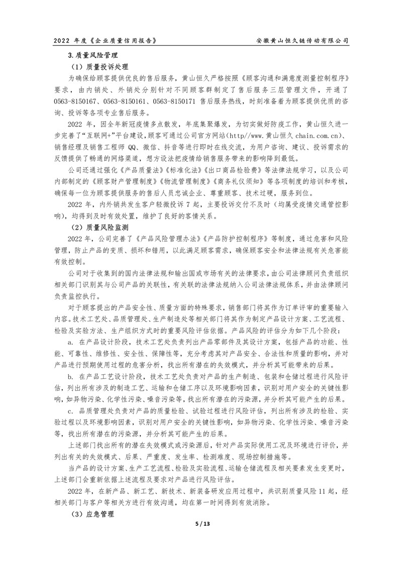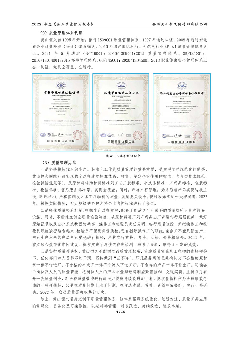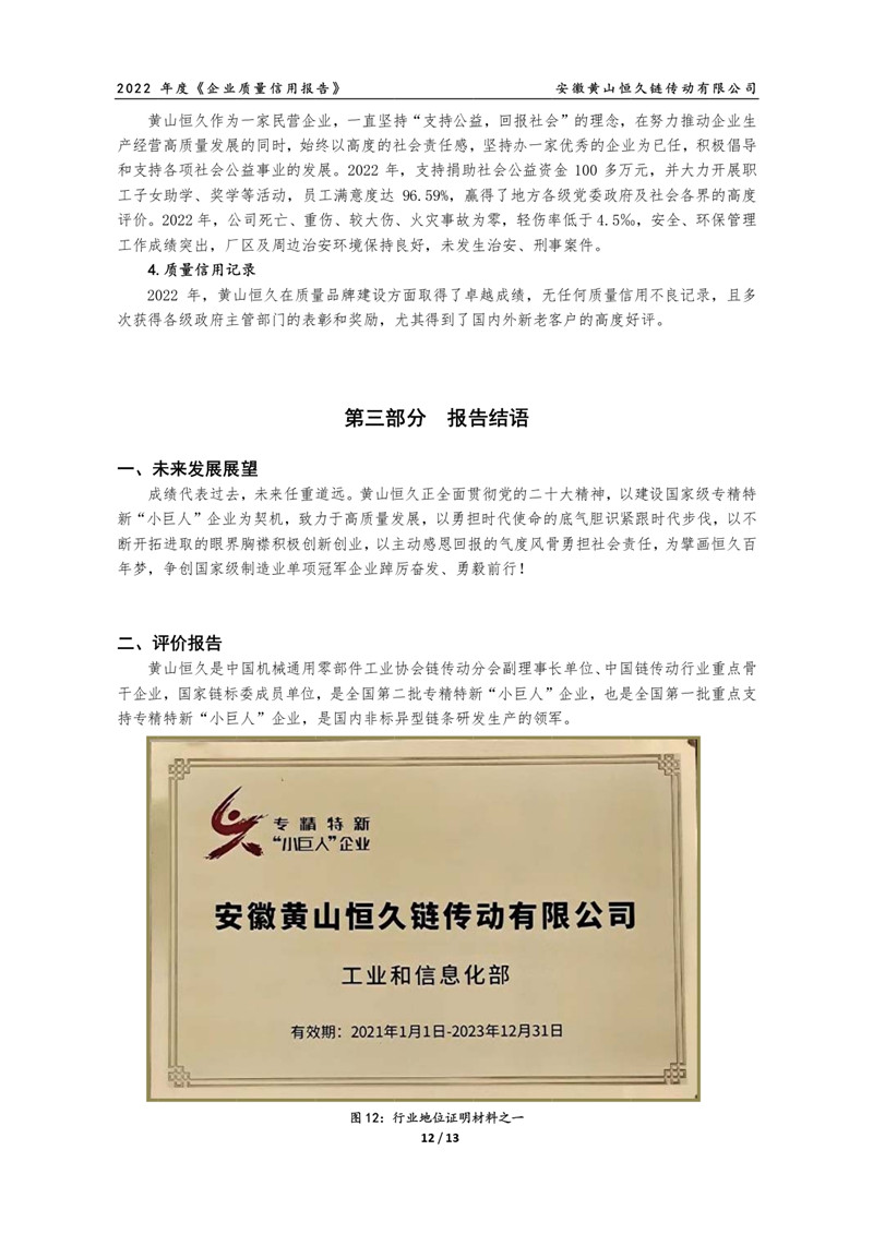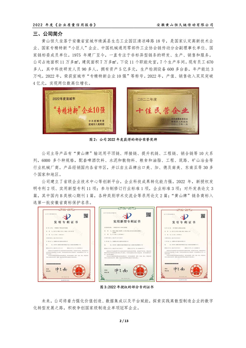 2022年度黄山ballbet贝博公司企业质量信用报告 - 安徽黄山ballbet贝博链传动有限公司