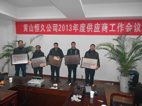 会上,给余姚恒盛、江苏方圆2户“2012年度优秀供应商”,及诸暨振达、绩溪华安、绩溪中盛3户“2012年度优秀协作厂”颁发了奖牌和奖金。获奖企业代表就今后的合作,作了“协同创新共赢”的表态发言。 公司品管处、制造处、采供处负责人先后通报了2012年的供应业绩。公司层领导及品管处、制造处、采供处有关人员参加会议,会议由总工程师周健主持。