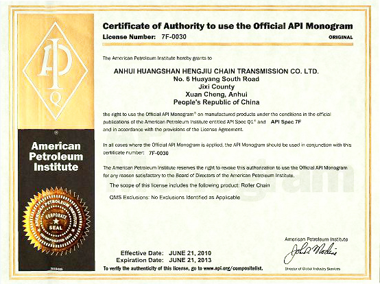 黄山ballbet贝博公司通过了美国API质量管理体系认证 - 安徽黄山ballbet贝博链传动有限公司