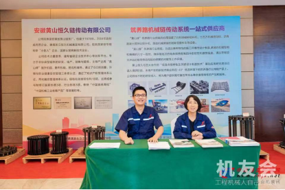 会议期间,黄山ballbet贝博公司展板前摆放的“黄山牌”筑养路机械链条产品,吸引了与会领导嘉宾的瞩目与青睐,他们纷纷驻足观看并给予了高度评价。