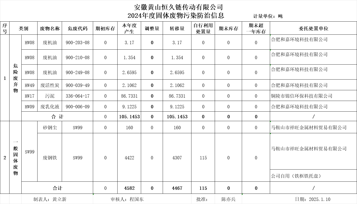 安徽黄山ballbet贝博链传动有限公司 2024年度固体废物污染防治信息